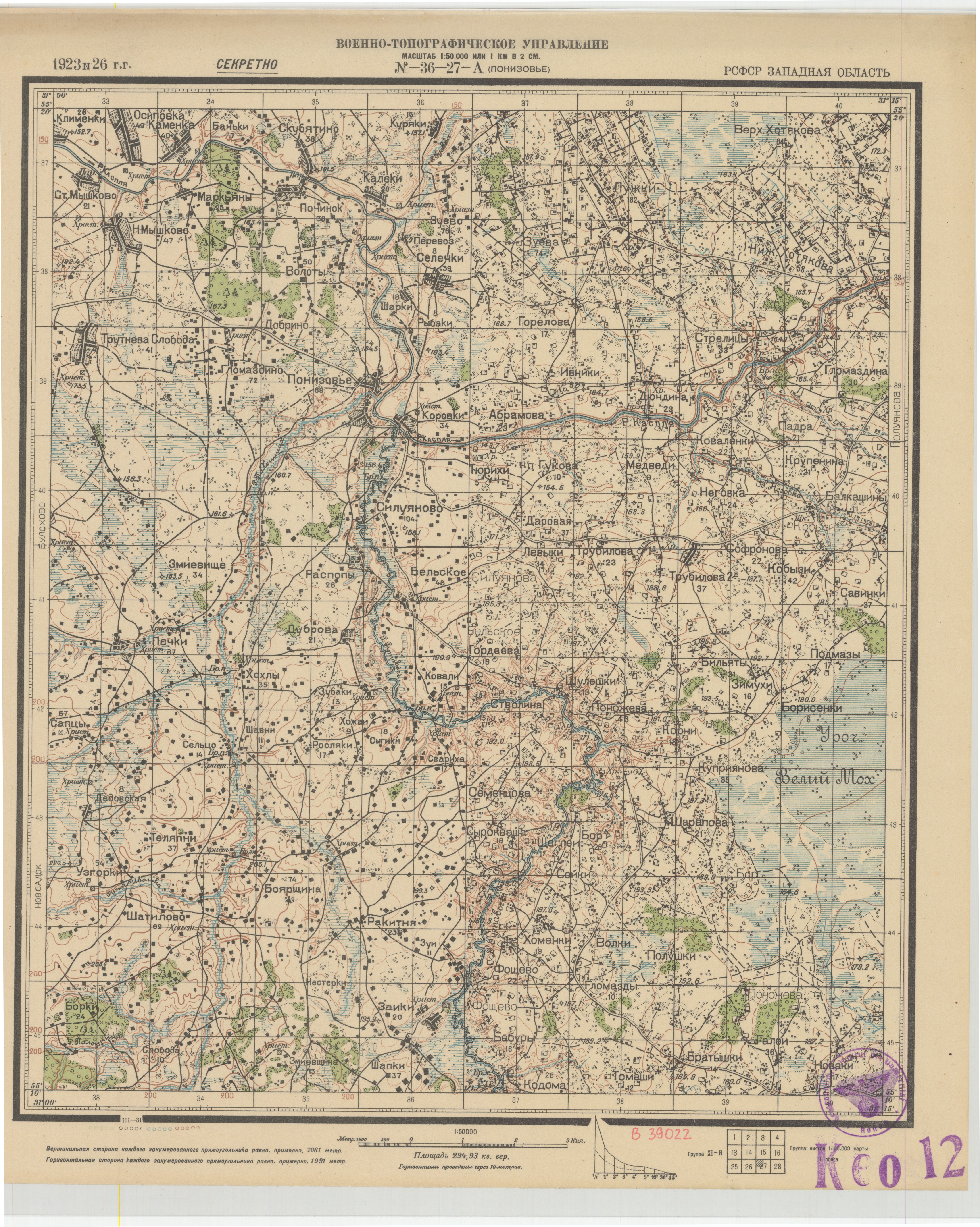 Западная - (N-36-27-А) - Понизовье - 1926г