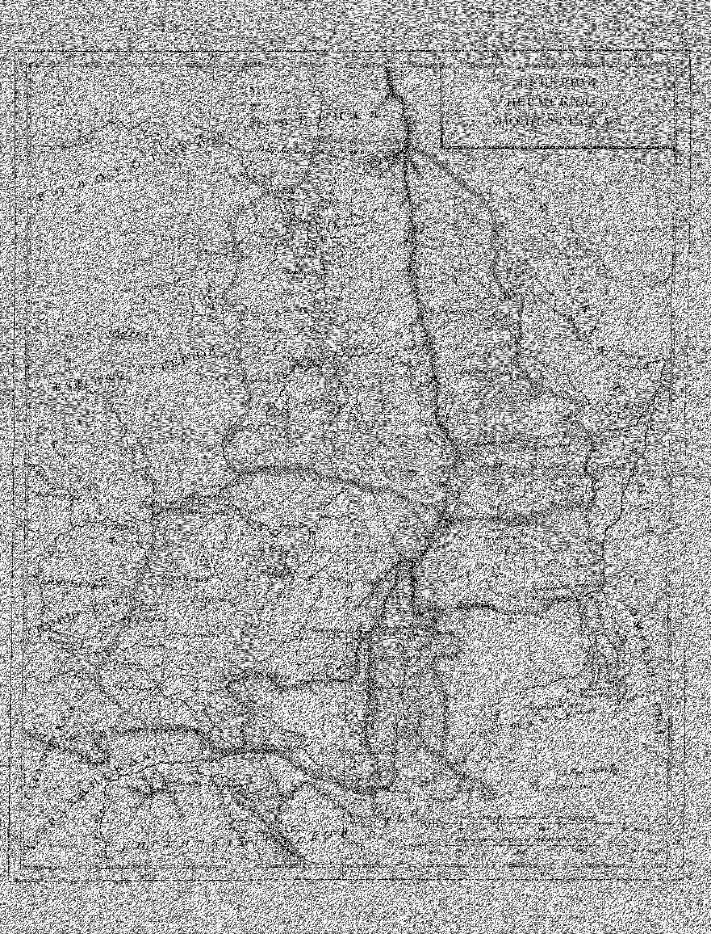 Карта Пермской и Оренбургской губернии 1824г.