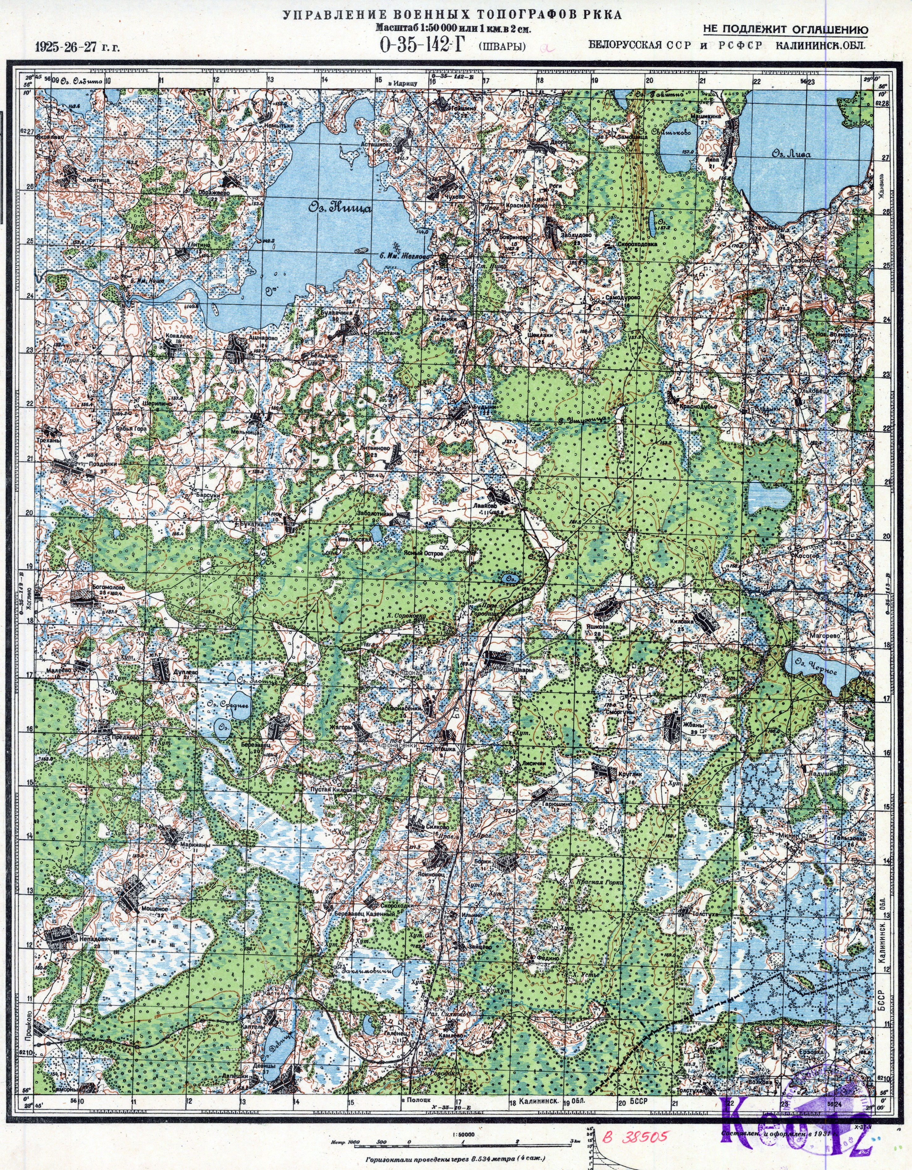 Белорусская ССР - Калининская - (O-35-142-Г) - Швары - 1927г