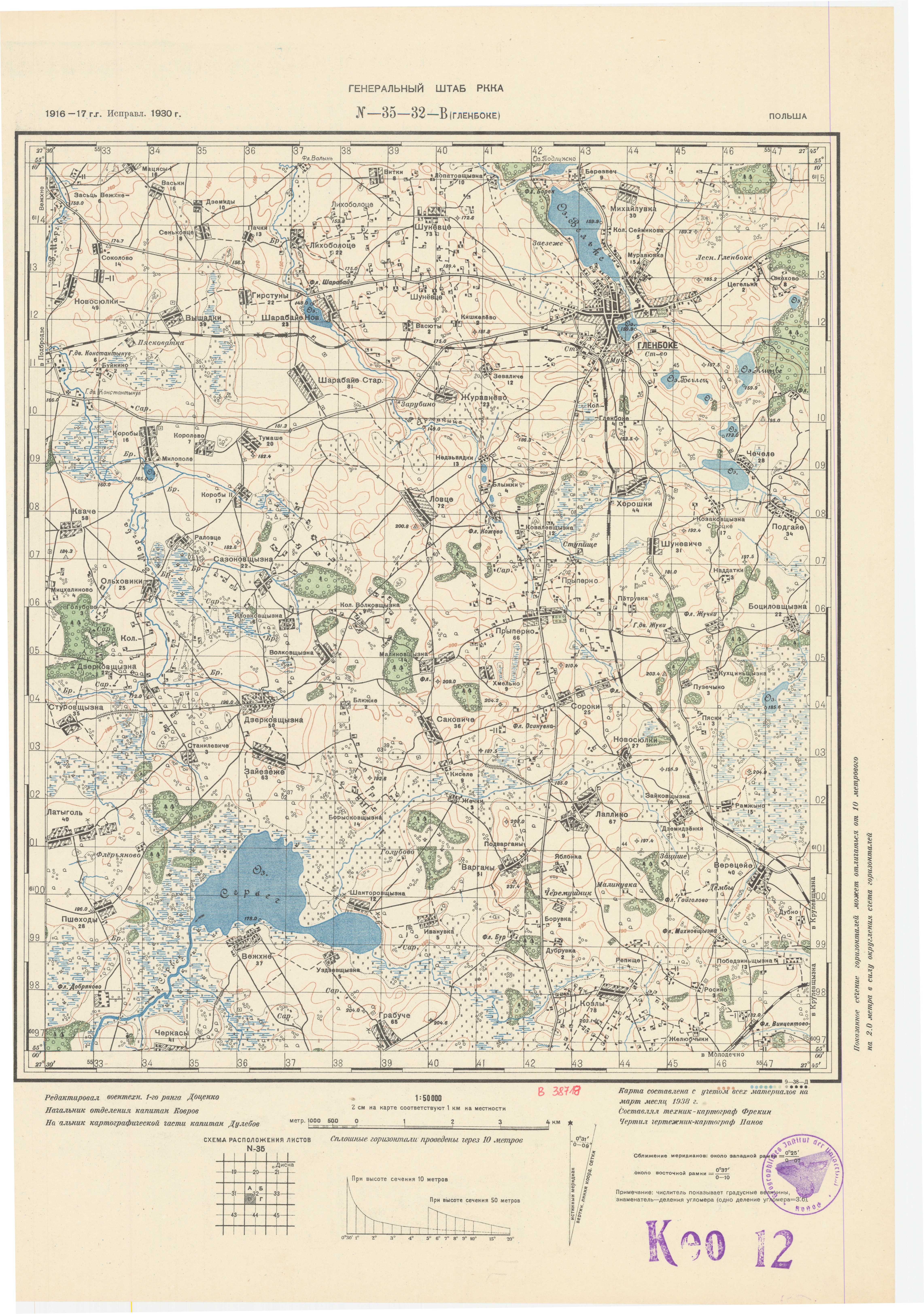Польша - (N-35-32-В) - Гленбоке - 1930г