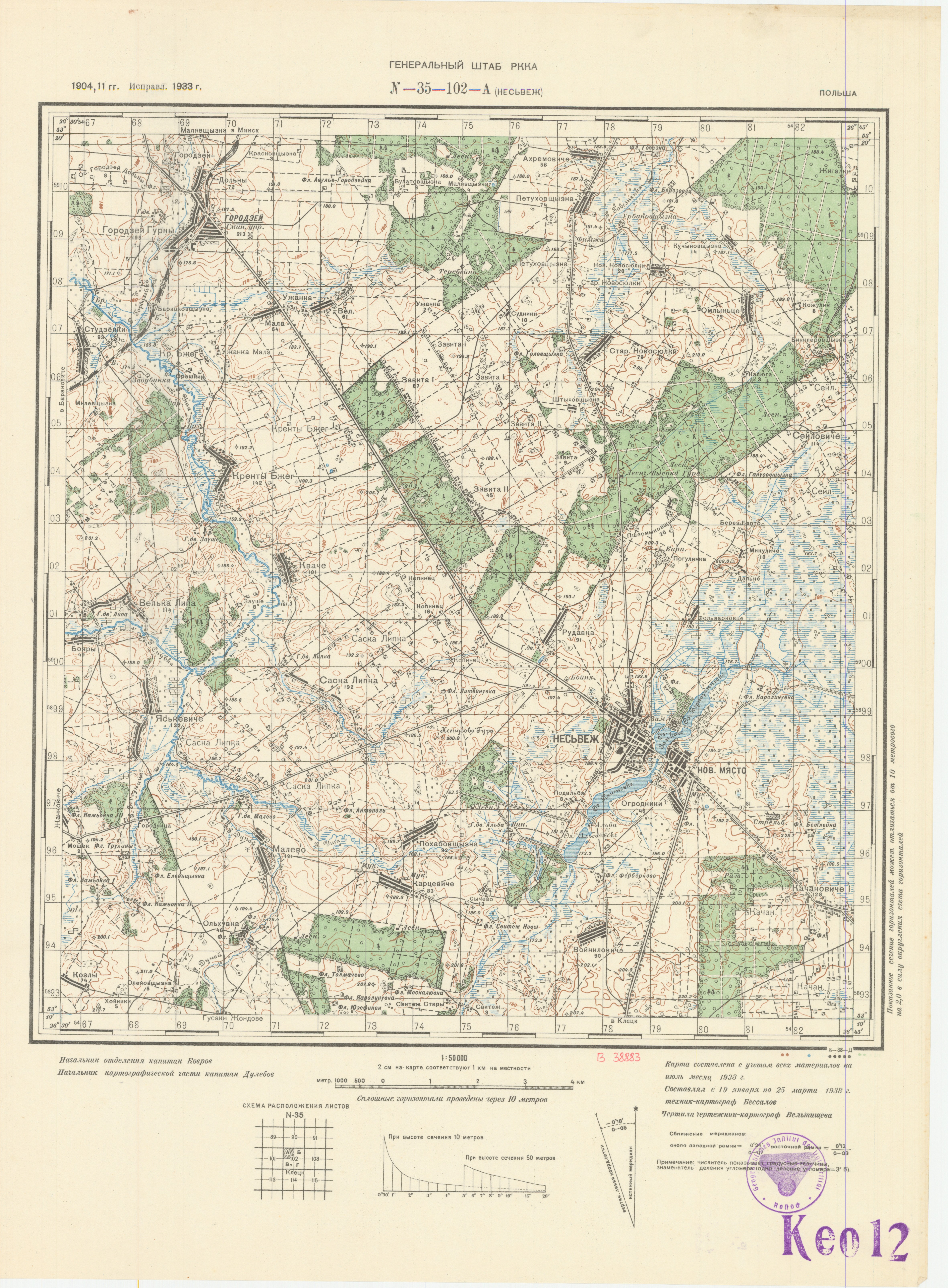 Польша - (N-35-102-А) - Несьвеж - 1933г