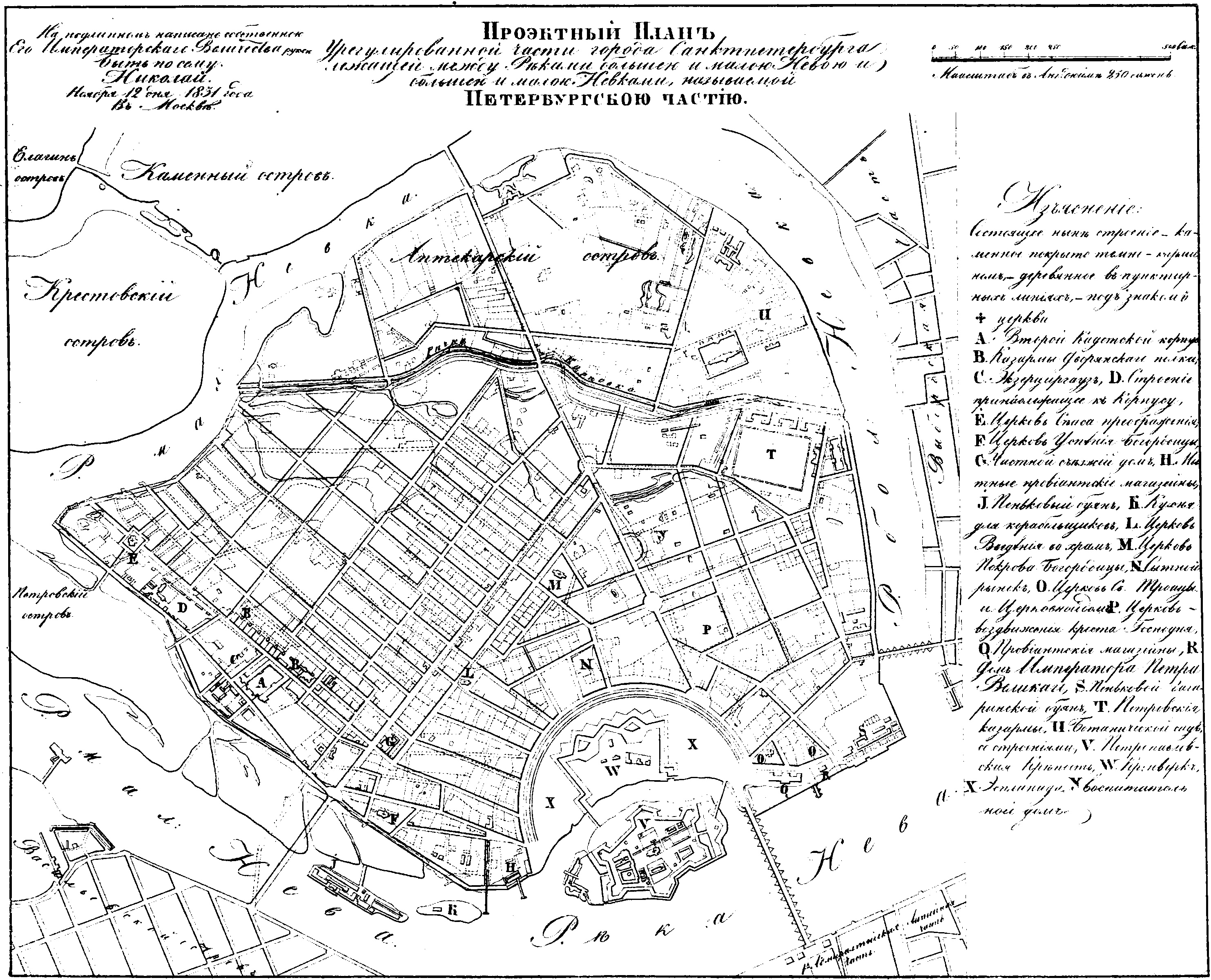 Проетный План города Санкт-Питербурга между реками бльшой и малою Невою и большой и малою Невками 1831г.