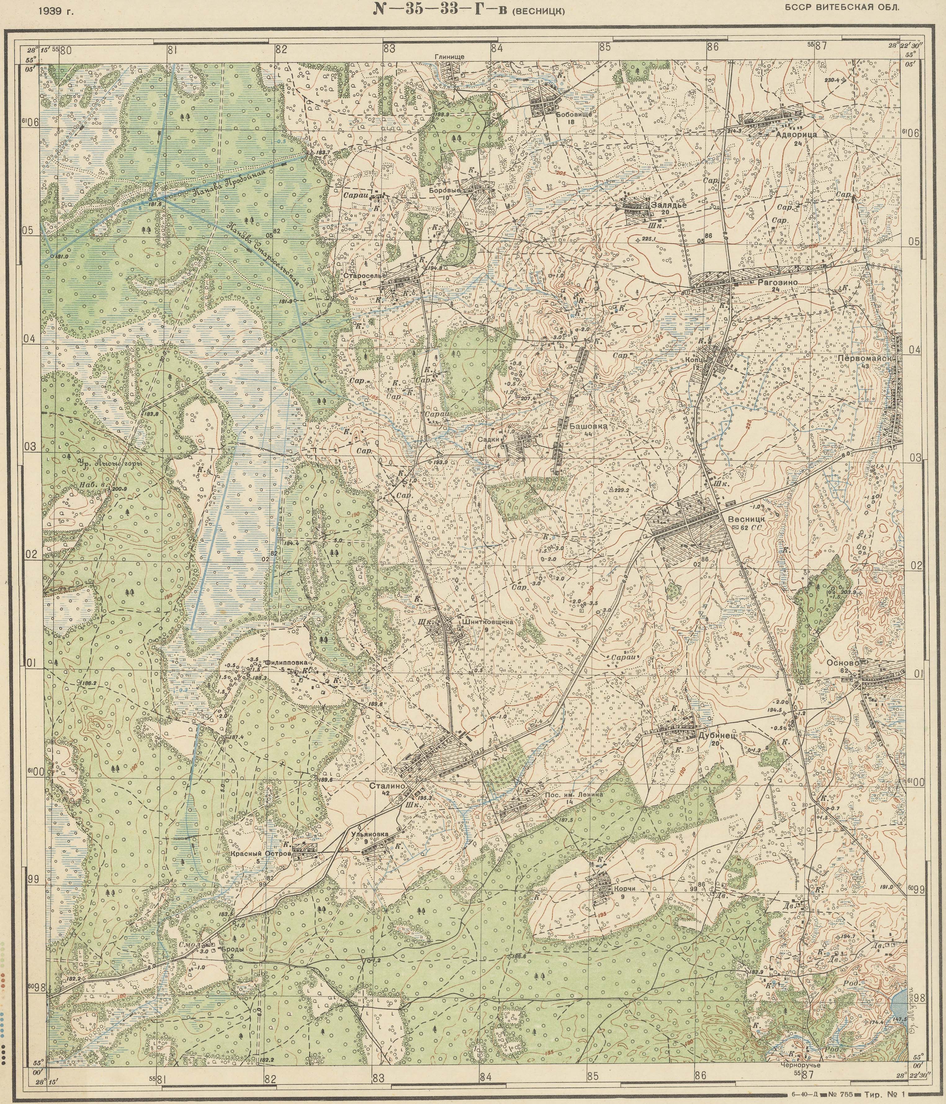 Витебская - (N-35-33-Г-в) - Весницк - 1939г