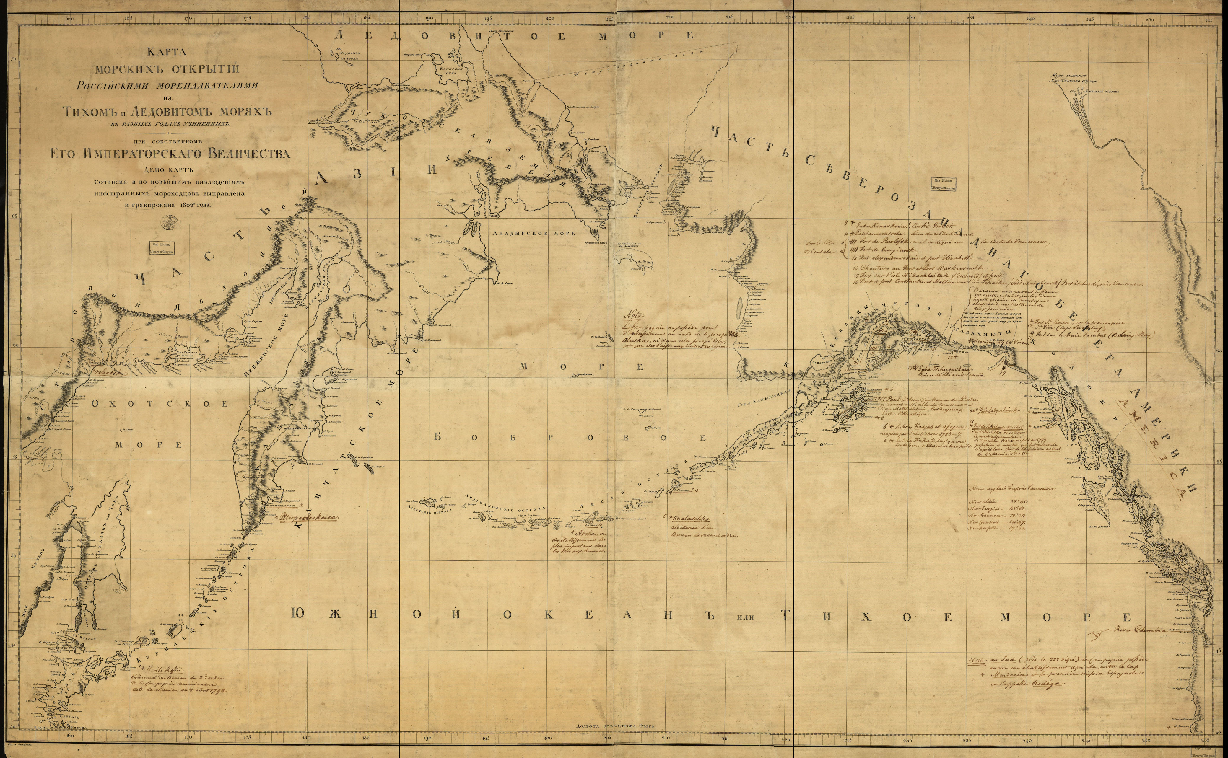 Карта морских открытий Росийскими мореплавателями на Тихом и Ледовитом морях.