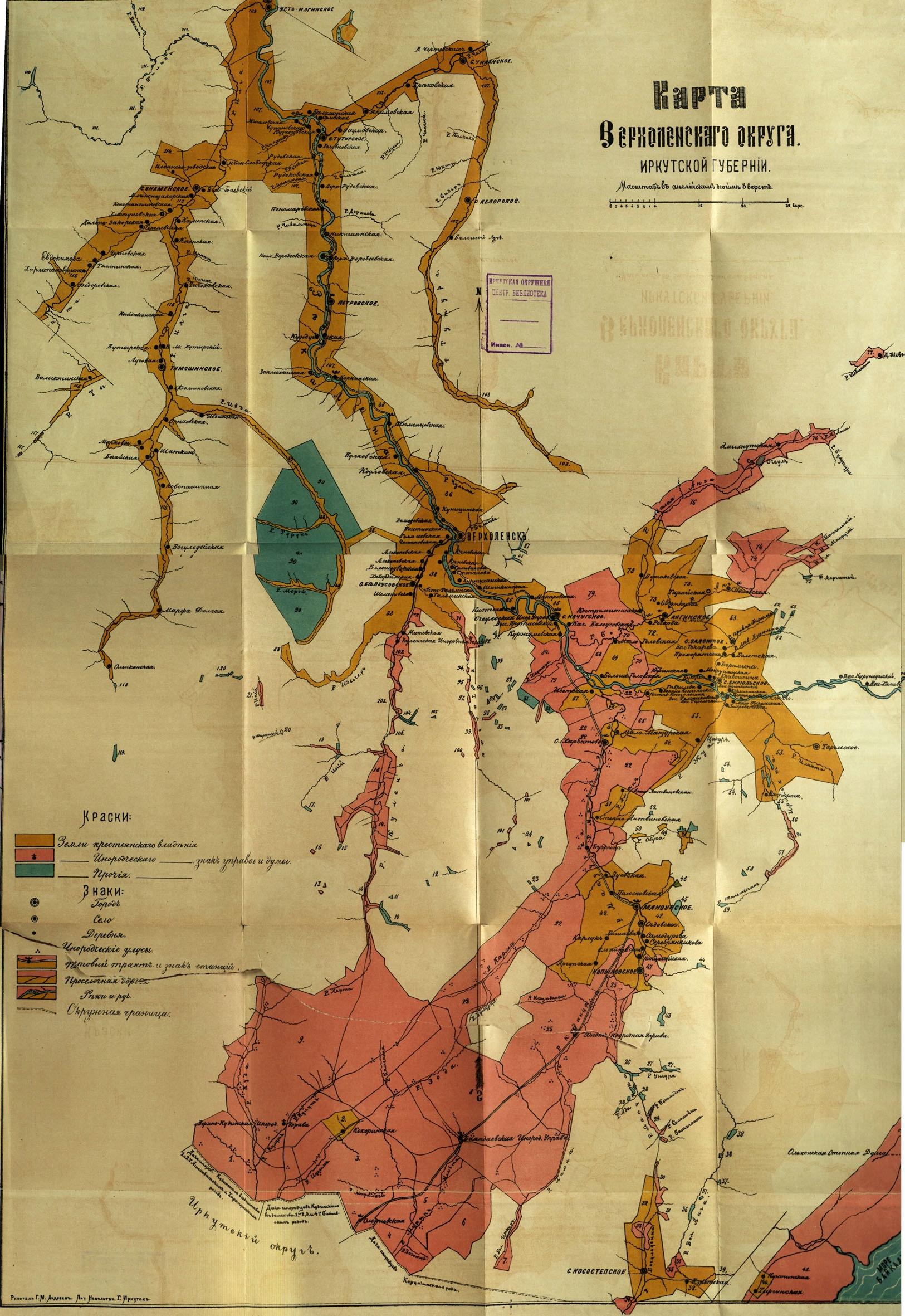 Карта Верхоленского округа Иркутской Губернии 1886 год