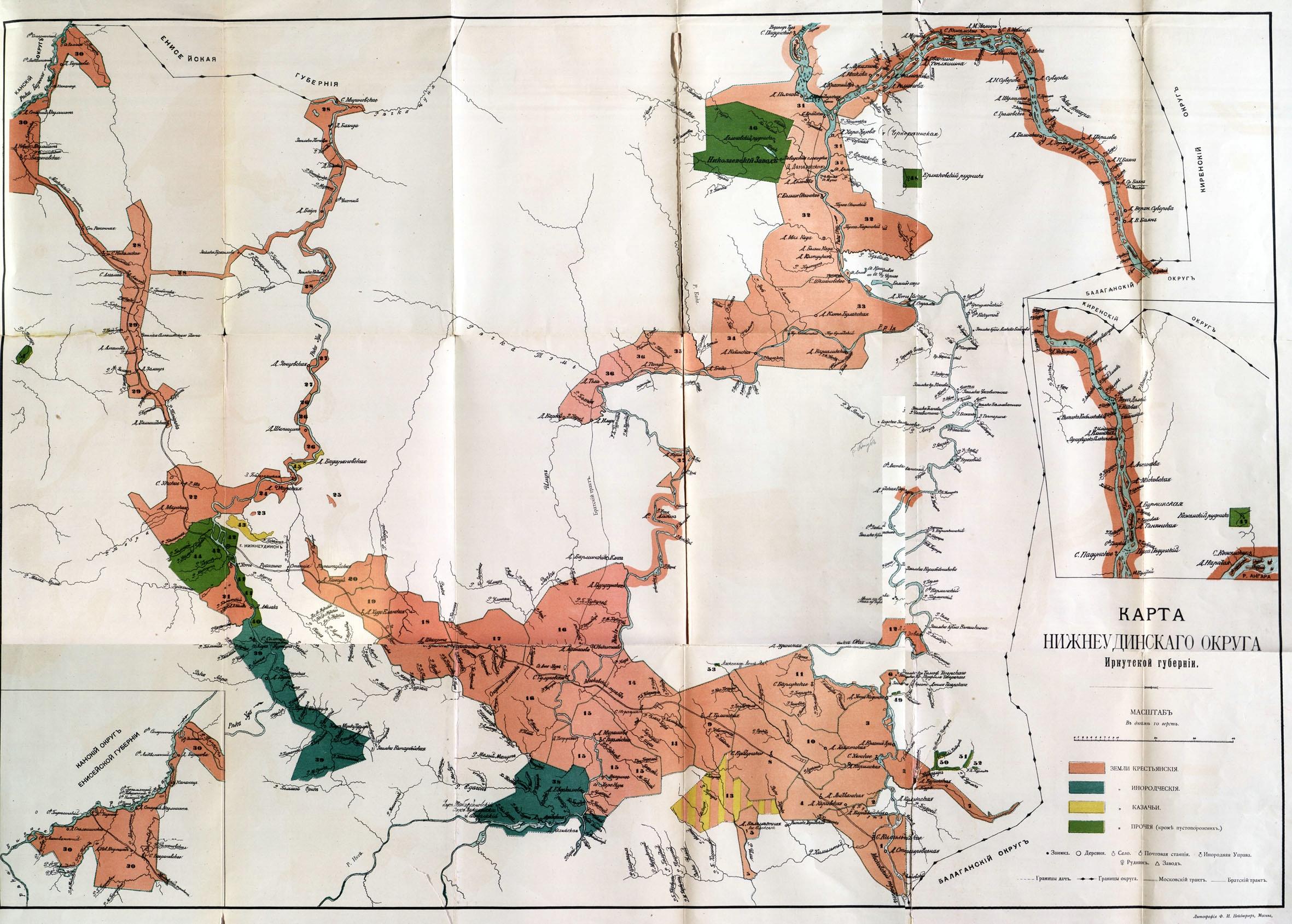 Карта Нижнеудинского округа Иркутской Губернии 1886 год