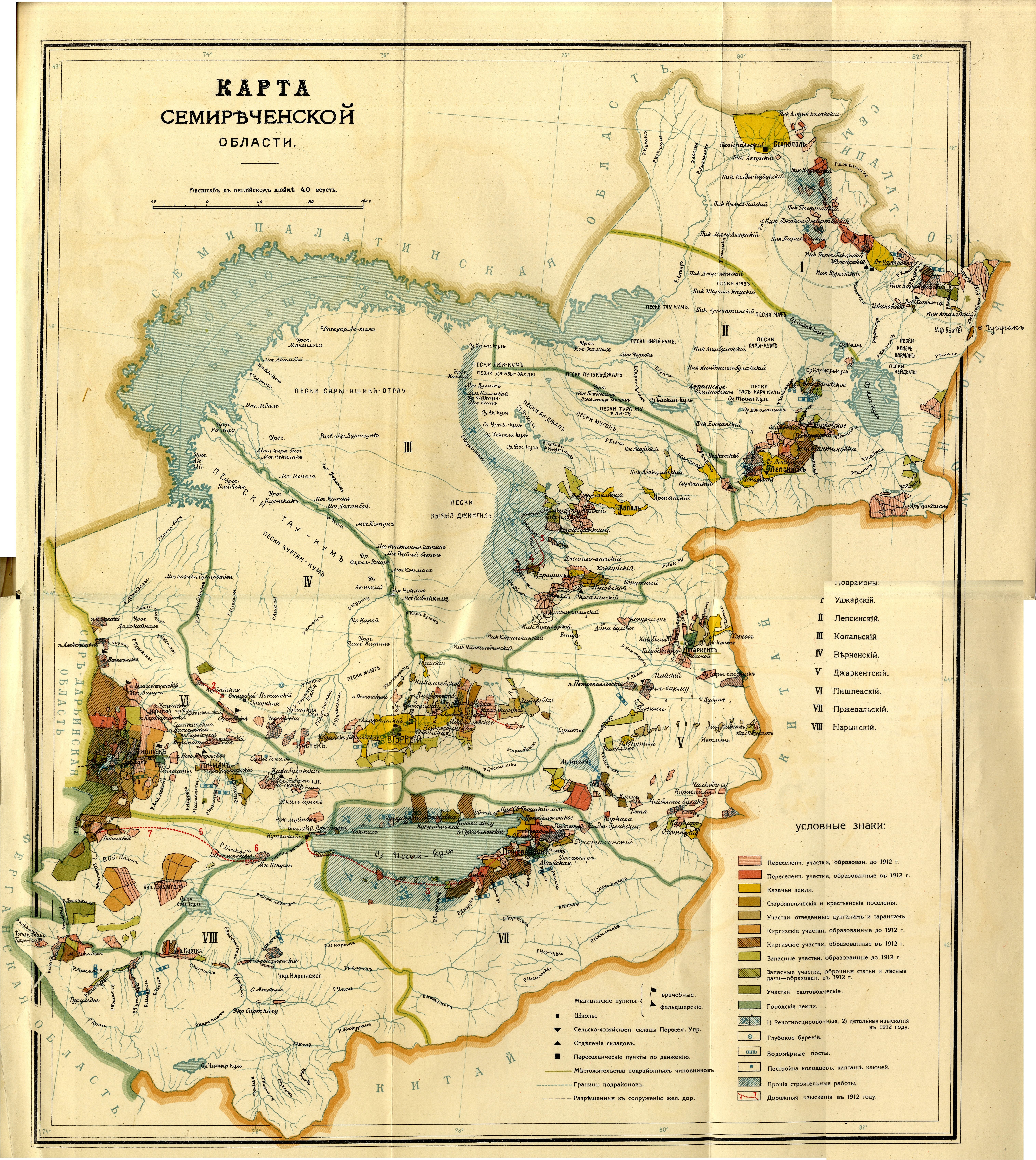 Карта Семиреченской области 1912 год