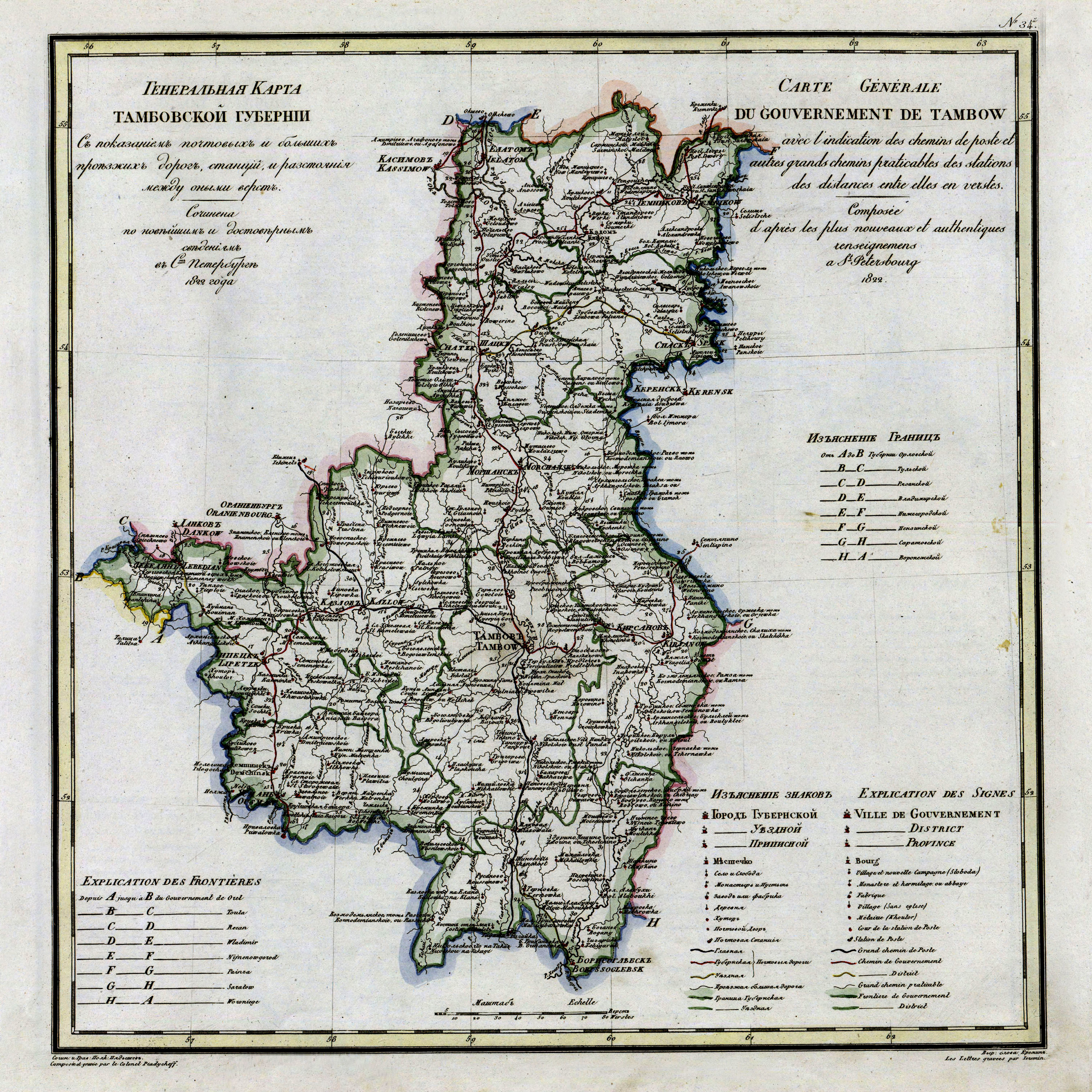 Генеральная карта Тамбовской губернии в 1821 году