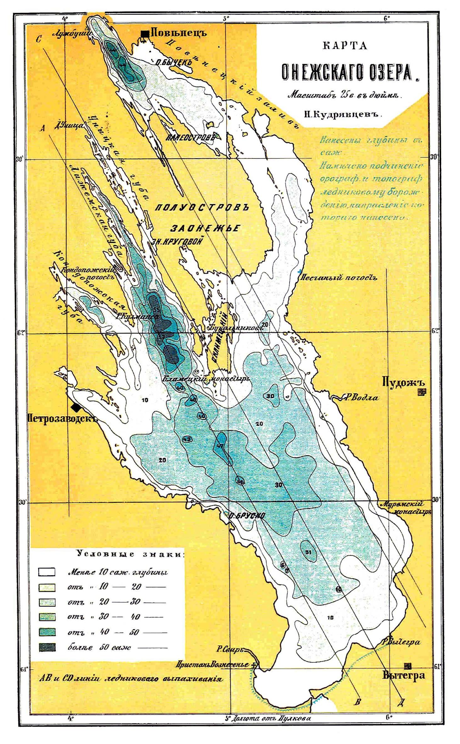 Карта Онежского озера