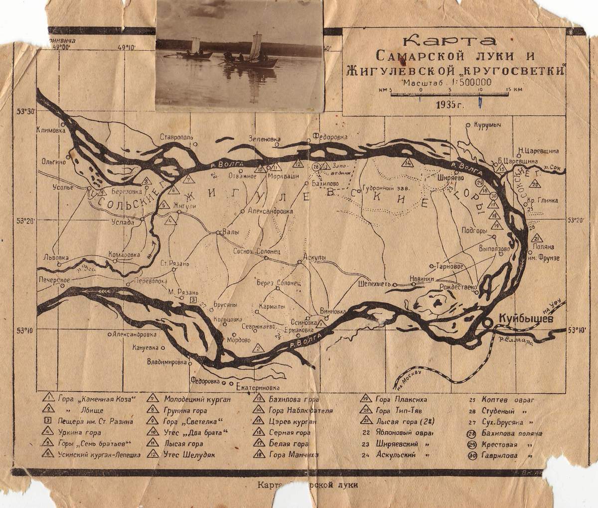 Карта Самарской Луки и Жигулевской кругосветки 1935г