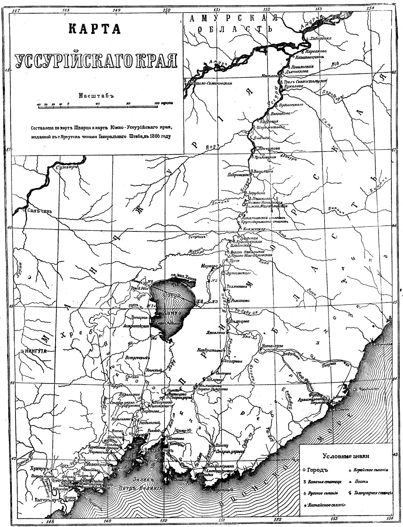 Карта маршрутов Пржевальского в Уссурийском крае