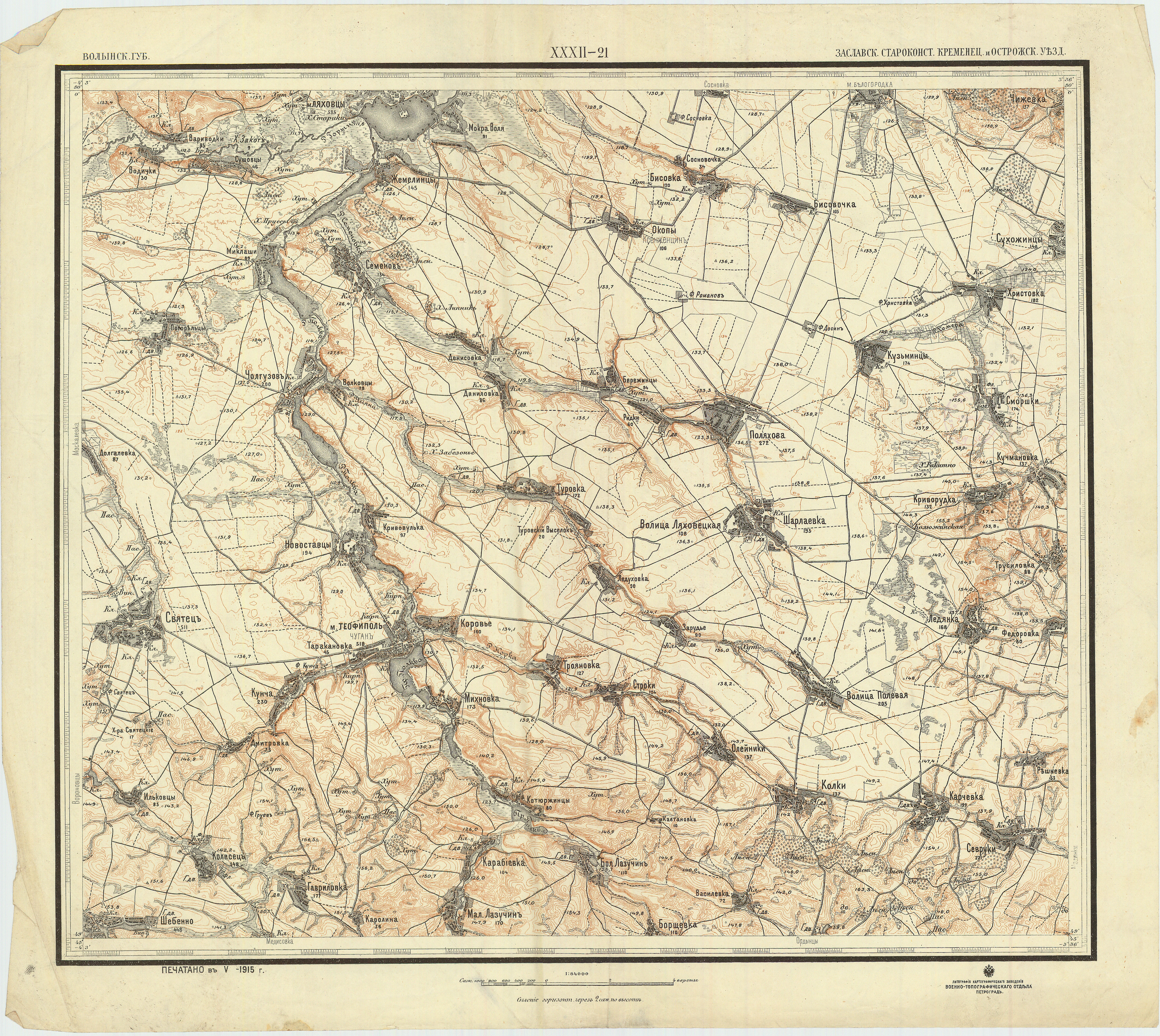 Военно-топографическая карта XXXII-21. Белогородка, Ляховцы, Теофиполь (1915).