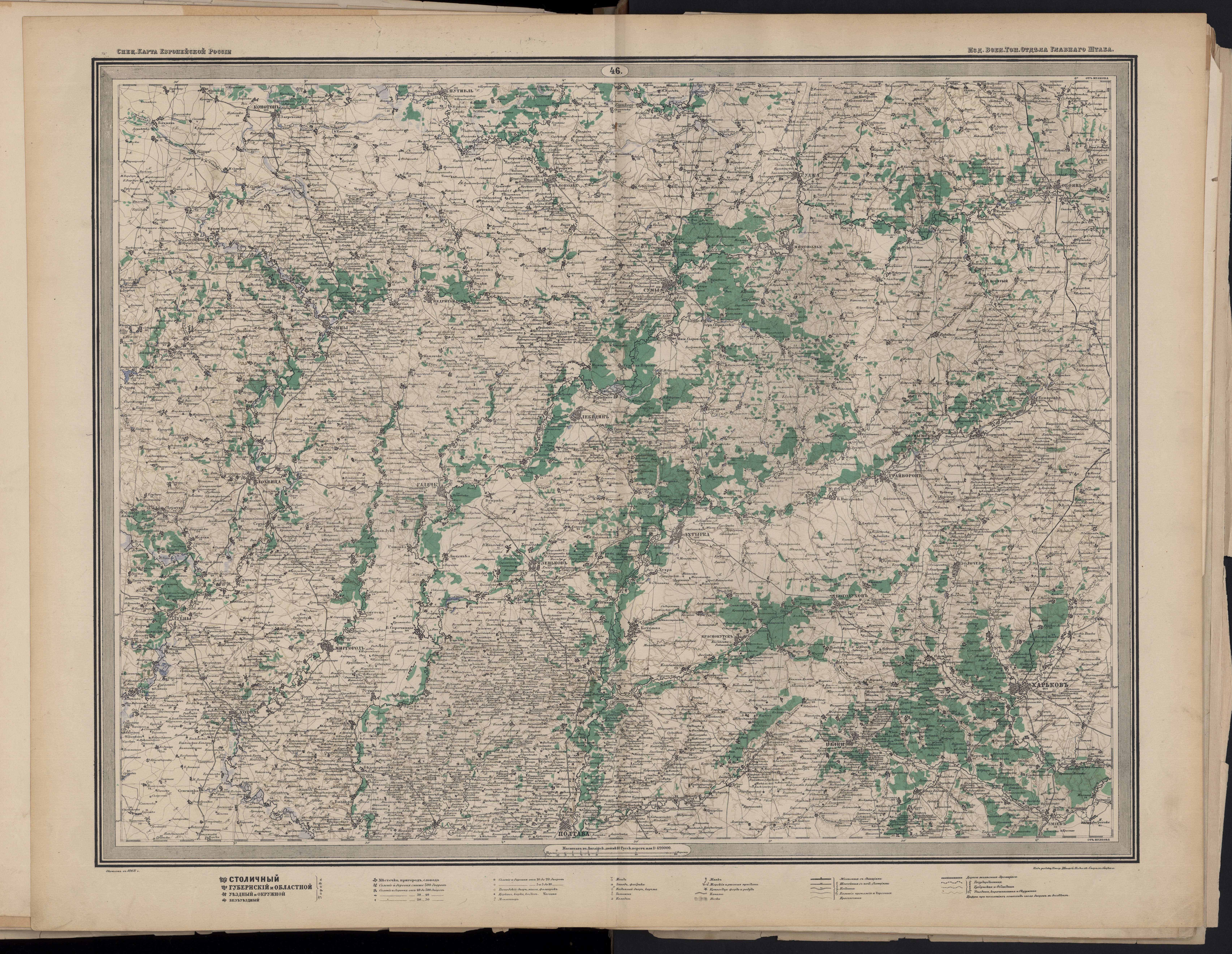 Специальная военная карта Европейской части России 1868 год Харьковская и Полтавская губернии
