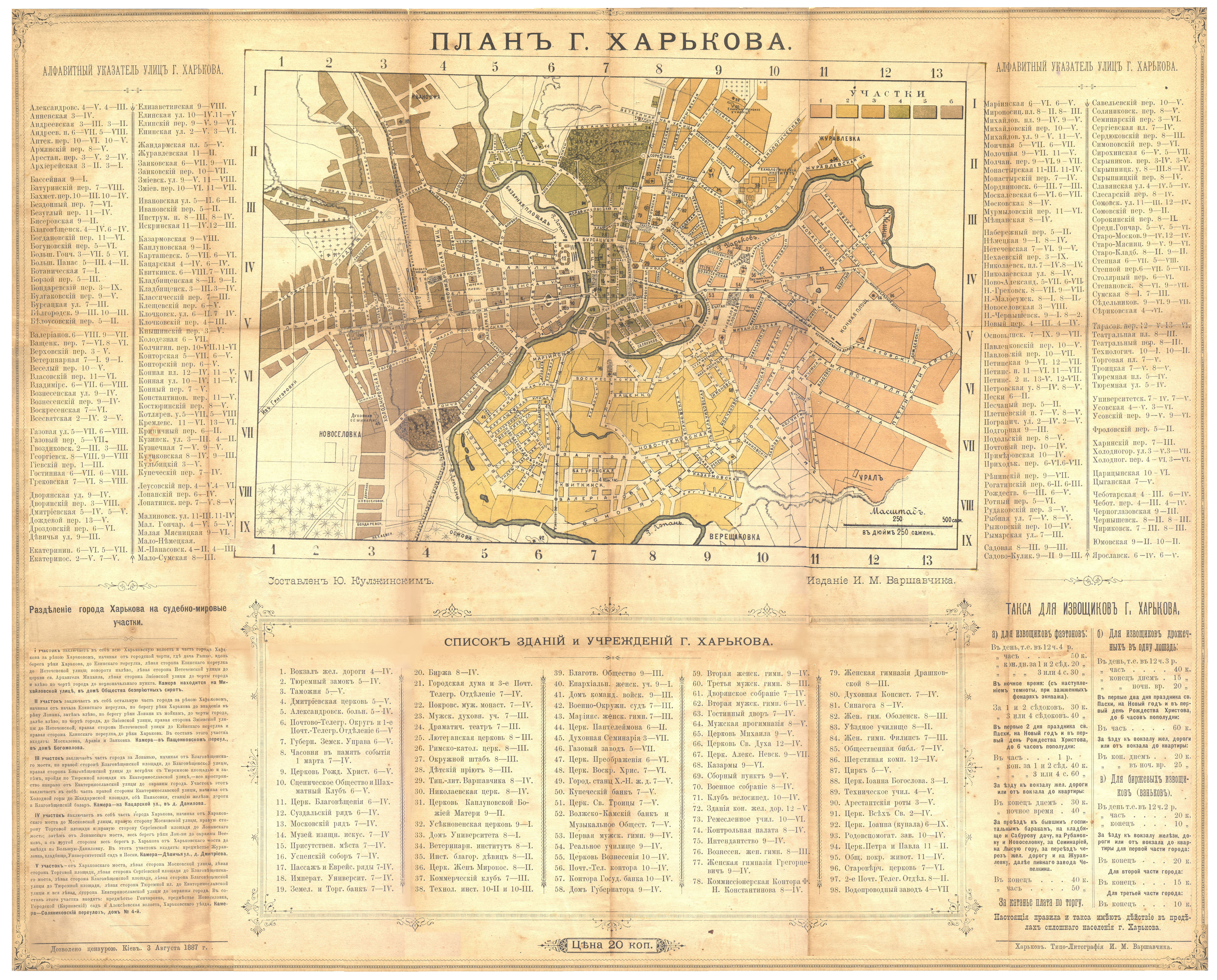 Карта Харькова в 1887 году