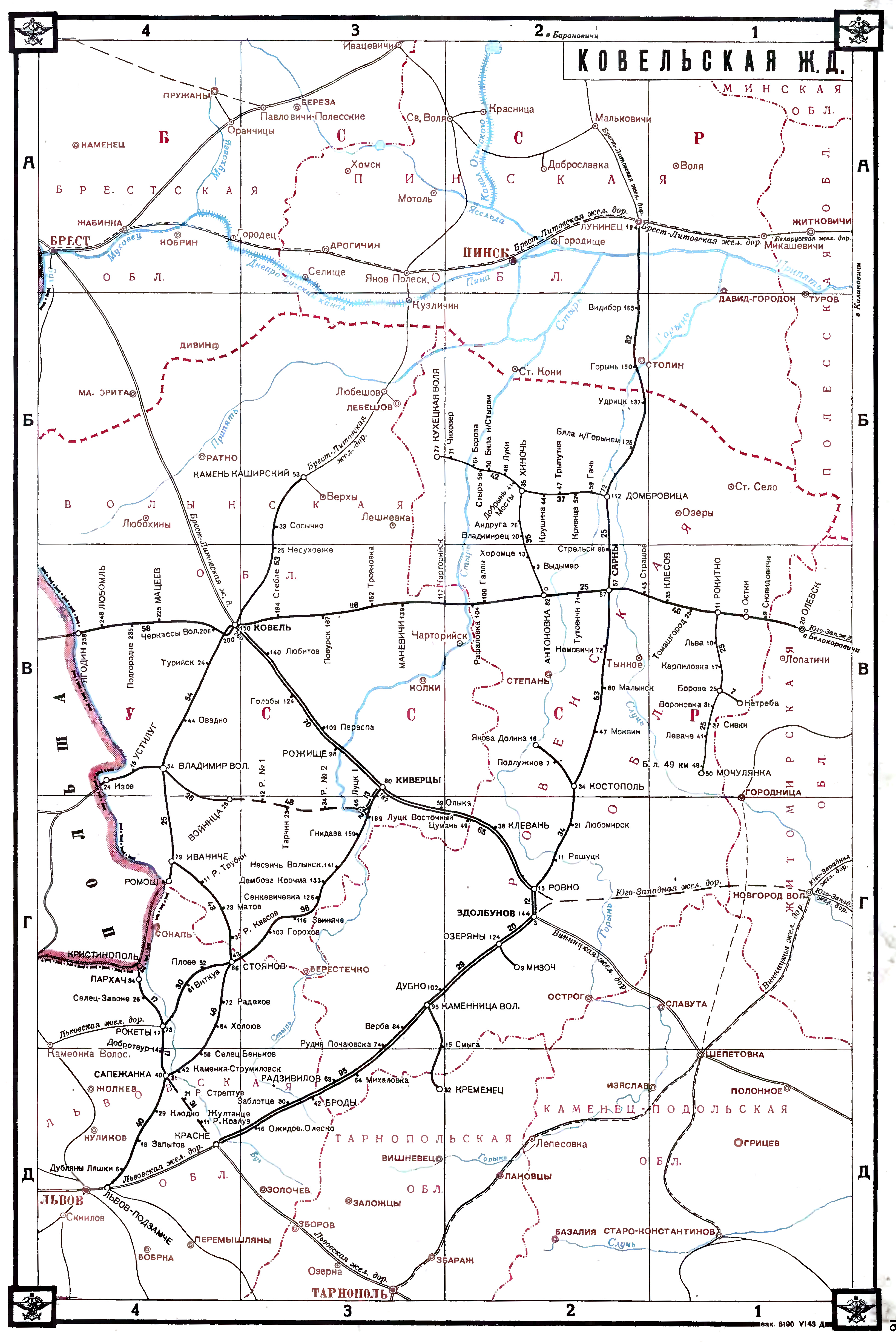 Карта Ковельской железной дороги в 1940 году