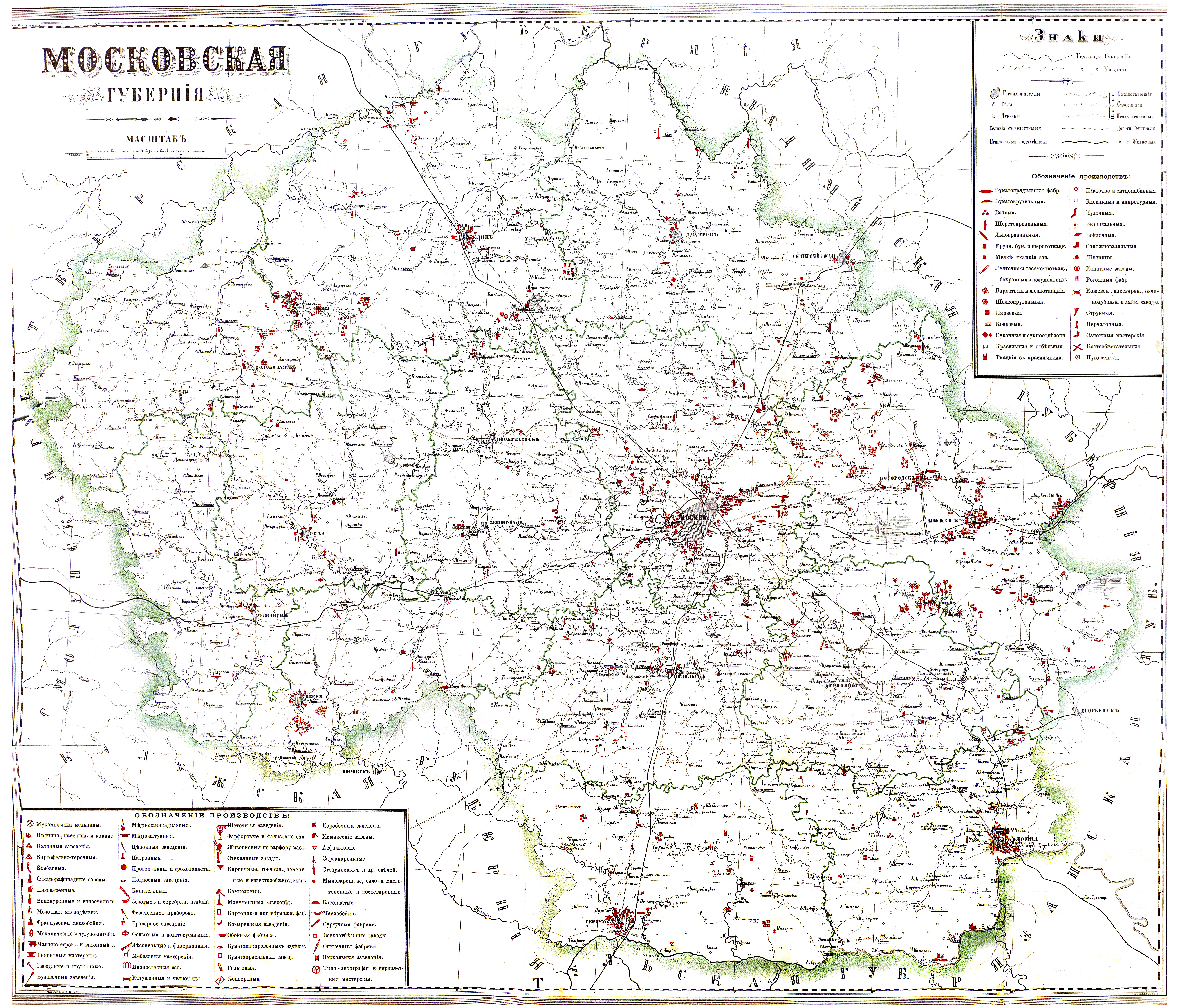 московская губерния с обозначением производств