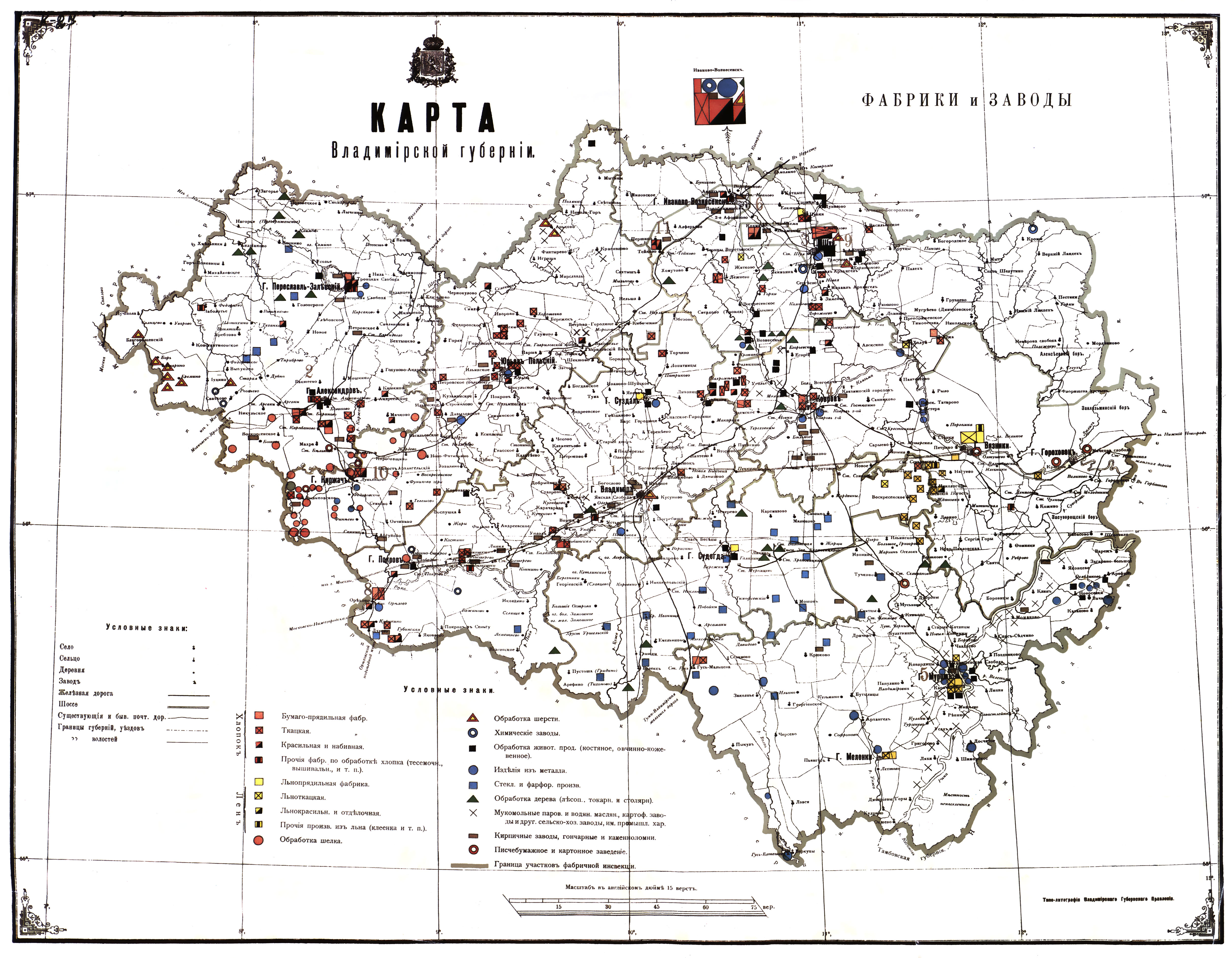 Карта Владимирской губернии в 1902 году