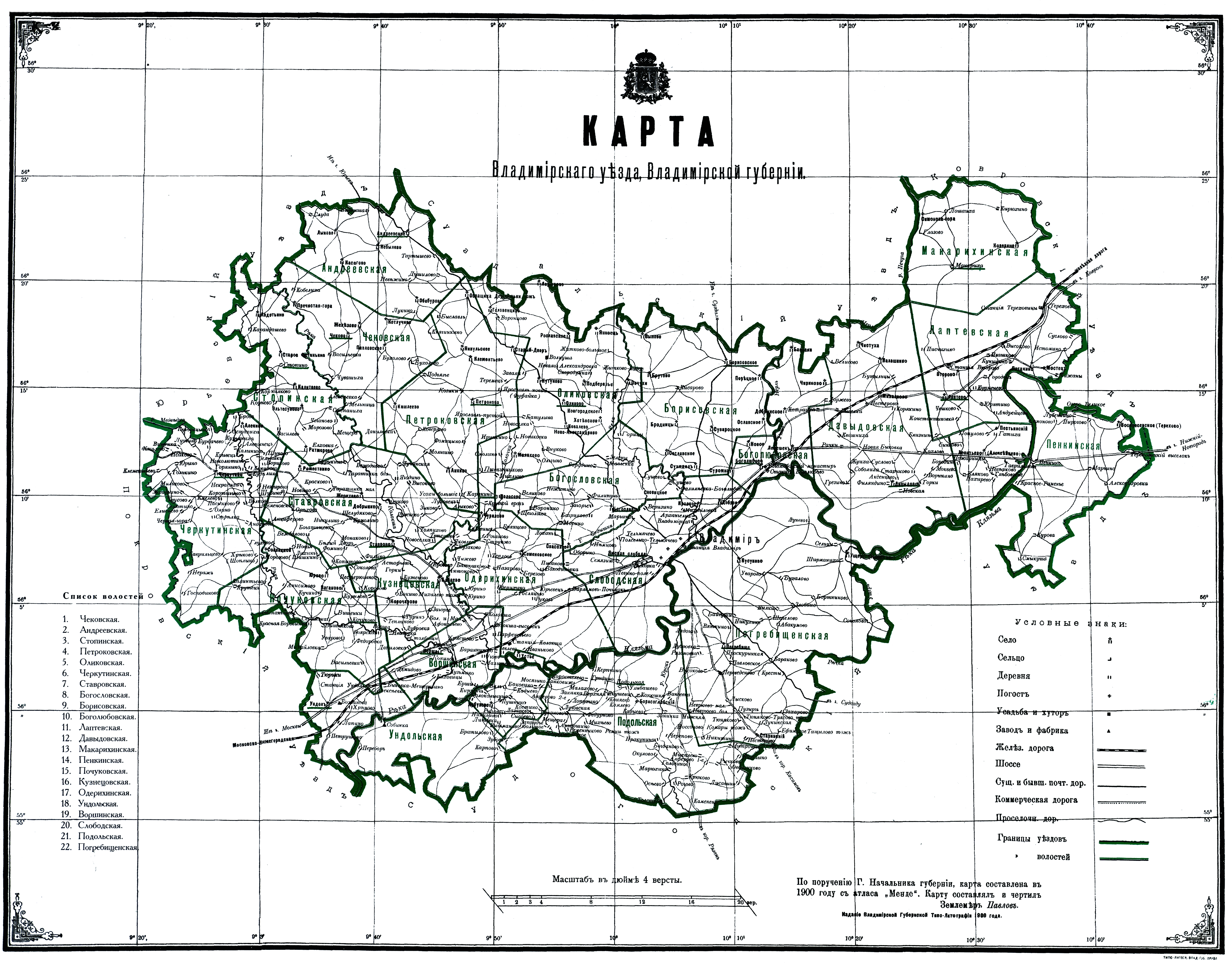 Карта Владимирского уезда, Владимирской губернии 1900 года
